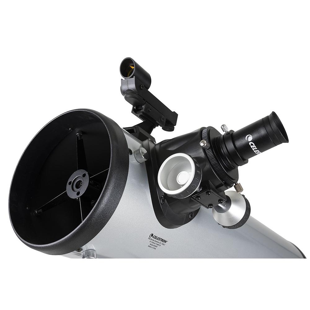 With a large 130mm (5”) objective lens, this telescope has enough light gathering ability to bring out impressive detail in celestial objects. You can expect sharp, bright views of Jupiter’s four Galilean moons, its cloud bands and Great Red Spot, the rings of Saturn, the trapezium in the Orion Nebula, and beautiful Pleaides Open Star Cluster. Highly reflective coatings on both the primary and secondary mirror enhance the views even more.