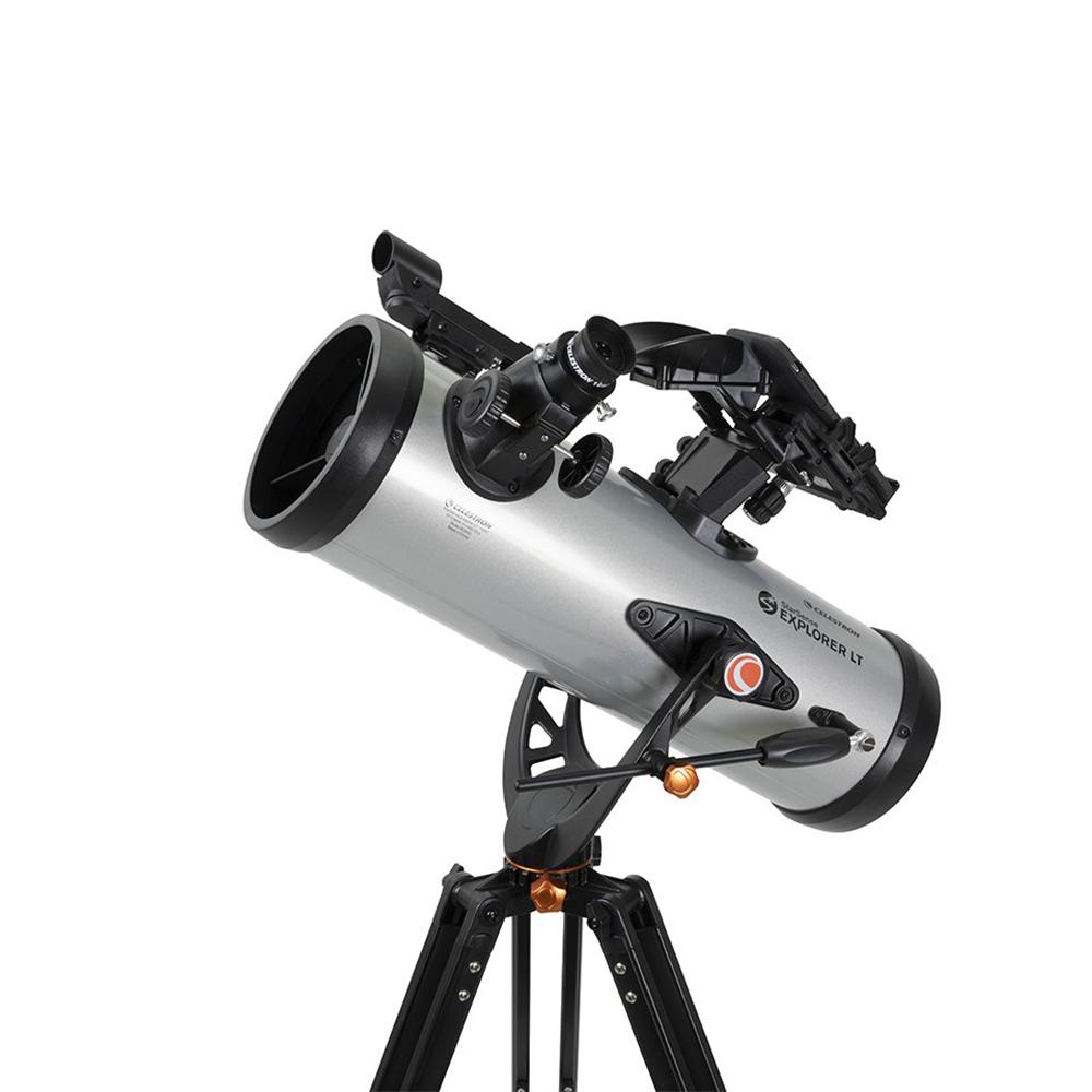 The Celestron Starsense Explorer LT114 Reflector Telescope’s simple altazimuth mount makes it easy to move the telescope to find your target. An altitude slow motion adjustment with a sliding rod helps you fine tune the telescope’s pointing position and follow targets as they appear to drift across the night sky. It’s all anchored by an adjustable, full-height tripod.